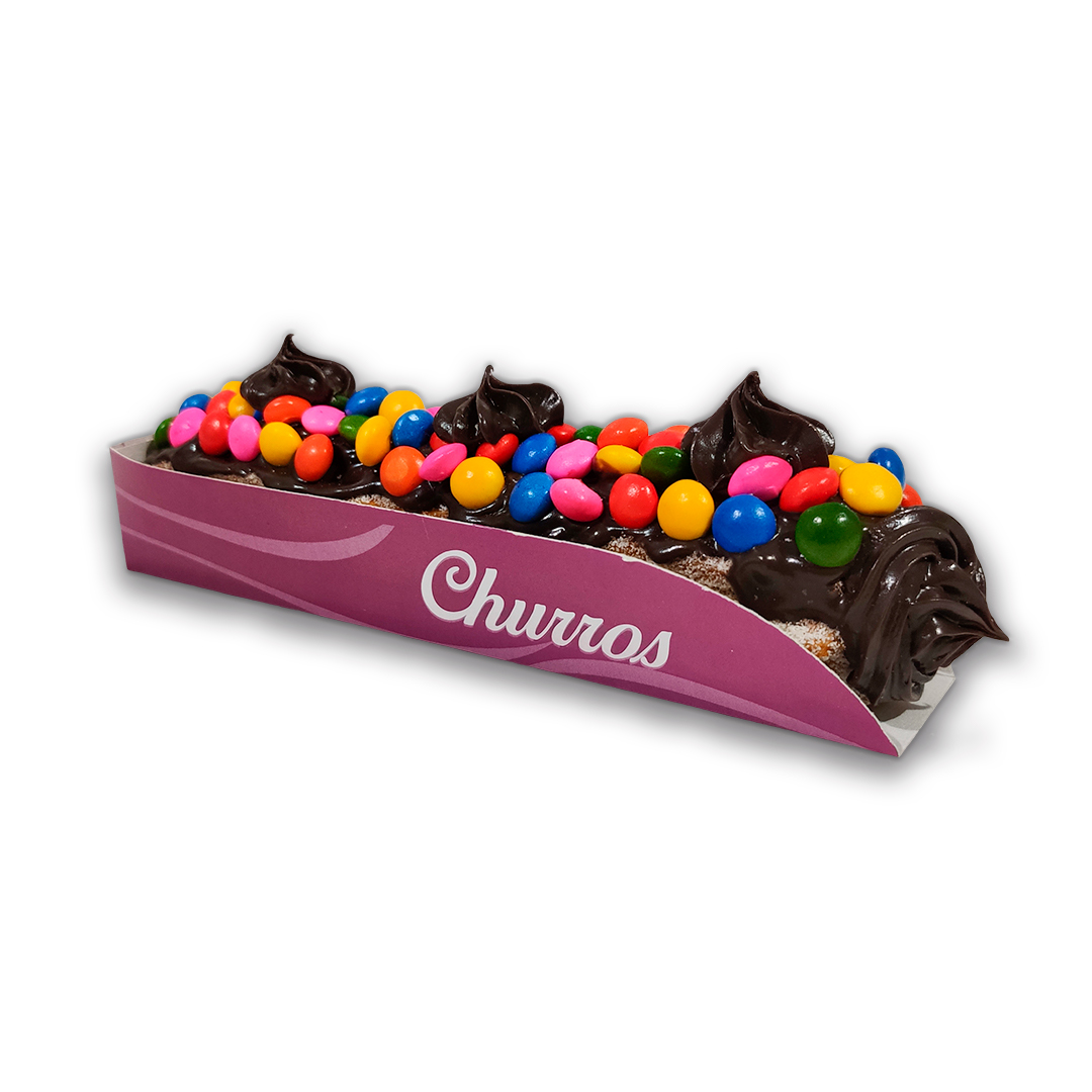 A prática Embalagem para Churros Balcão suporta 01 unidade de churros recheado. Seu formato permite o manuseio do alimento com segurança e higiene.