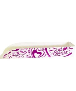 O prático Churros Balcão Branco/Kraft liso/ Branco interno Kraft suporta 01 unidade de churros recheado. Seu formato permite o manuseio do alimento com segurança e higiene.