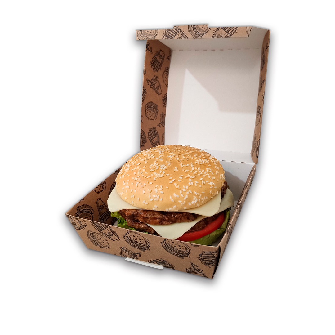A Embalagem Caixa H05 possui um formato prático e inovador, ideal para hambúrgueres, mini salgados e porções.
