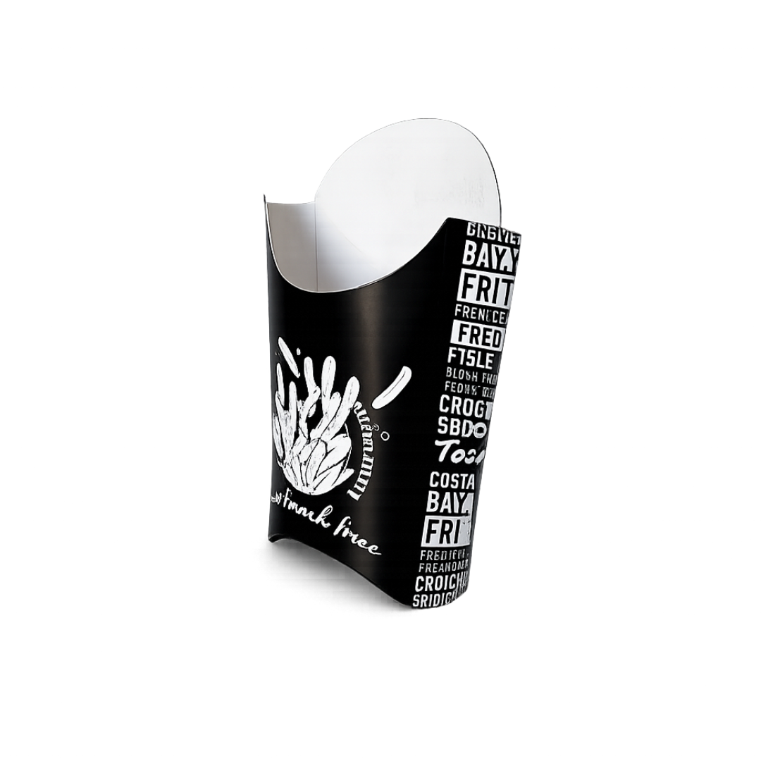 A Embalagem para Mini Fritas possui um formato inovador e prático, ideal para ser vendida no balcão, pedidos para viagem, food truck, etc.
