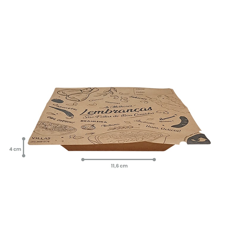 Conteúdo do Envio: 1 pacote de Marmita Quadrada P Kraft 500ml (acompanha tampa personalizada) – Pct./ 100 unid.